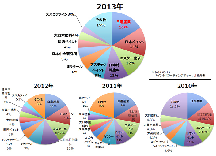 国内における省エネ塗料・2010~2013年のシェアで常にトップを維持するGAINA(ガイナ)の