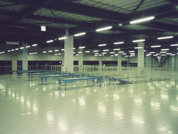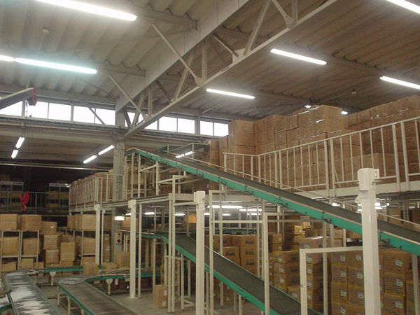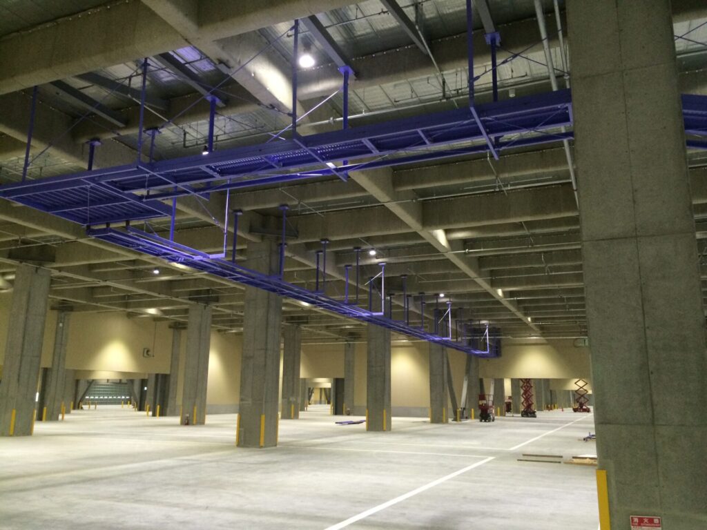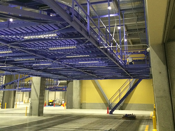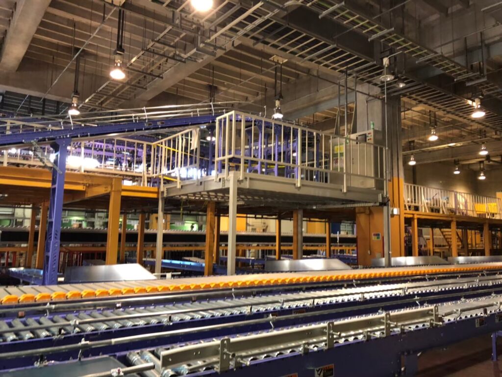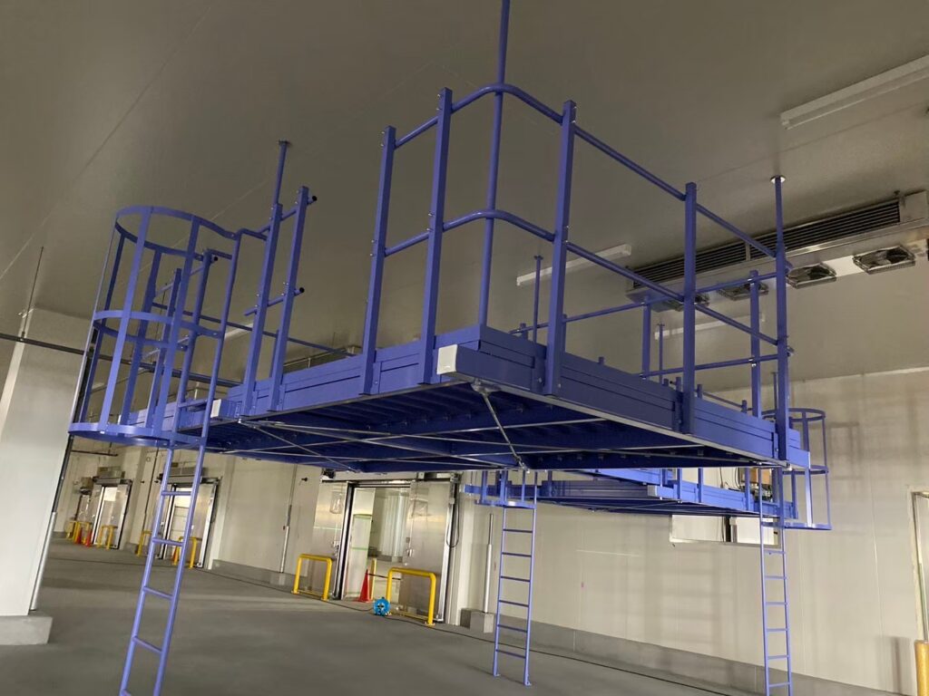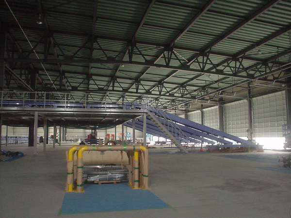 建物の床面から柱を建てたり、天井からつるしたりして床をつくることにより空いたスペースが確保でき、作業空間が広がります。安全面では、落下防止用の手すり、下面カバー、安全ネット、コンベアー間の渡りステップ等の設置により詳細に対応しております。
