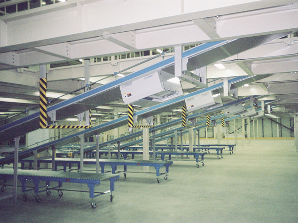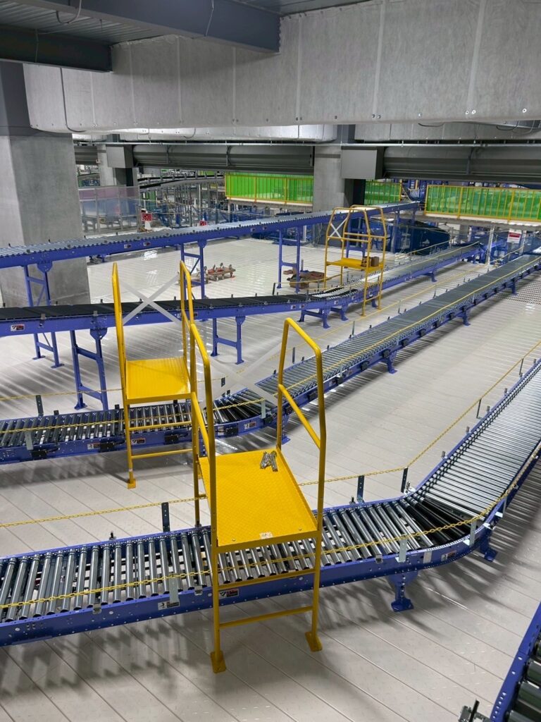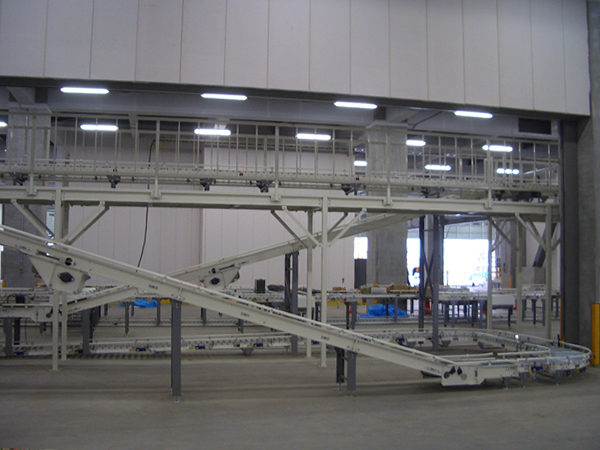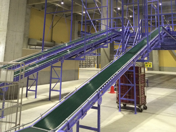 各種コンベアー等の設置場所の有効活用の方法として、搬送機器を立体的にレイアウトすることができます。